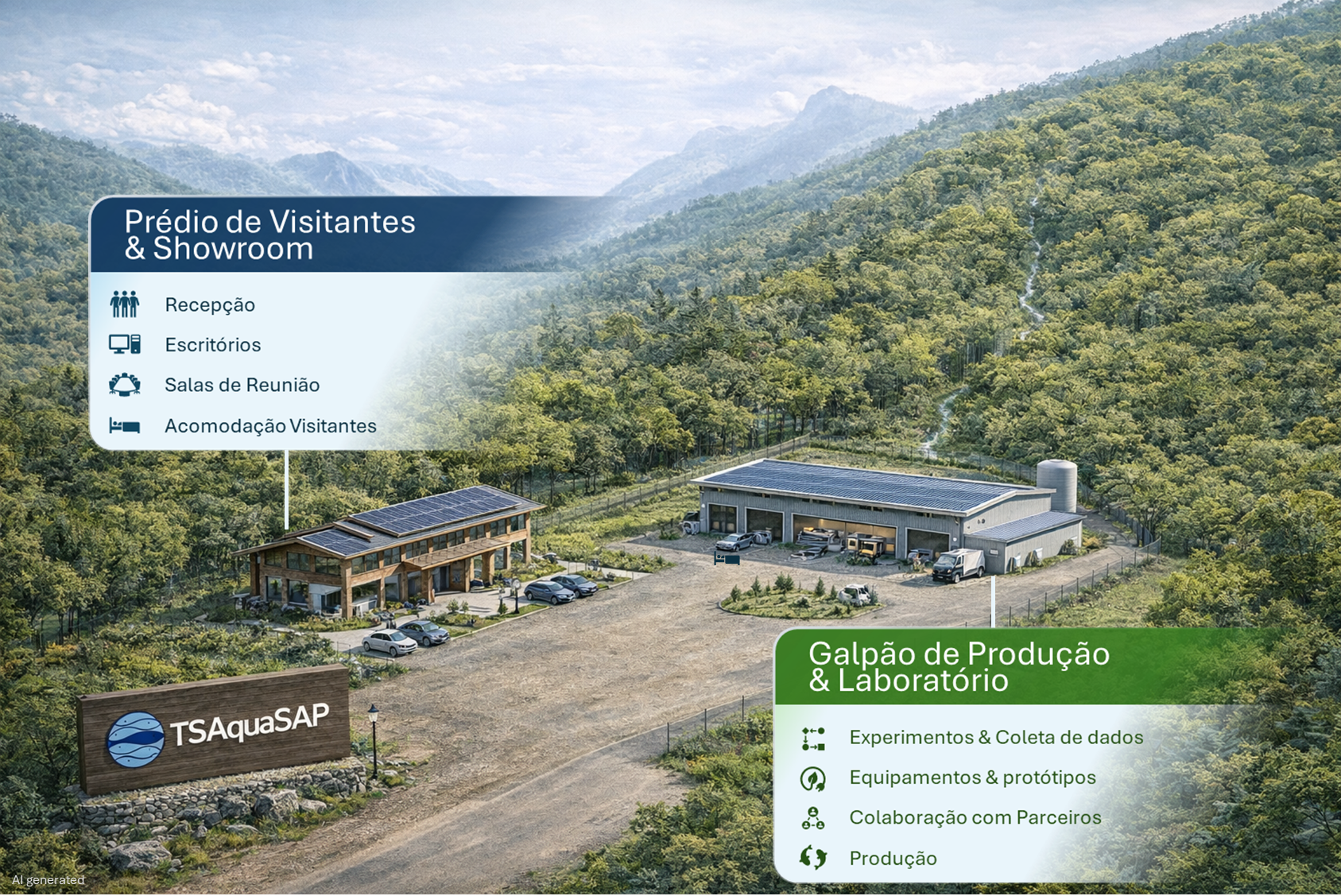 Para apoiar nossas atividades, estamos construindo em terreno próprio na Serra de Teresópolis, RJ, o TSAquaSAP Innovation Center,